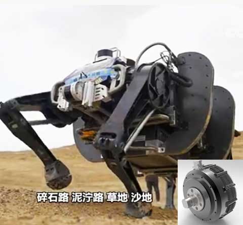 全電驅動12自由度大型仿生機器人關節,單電機功率6kW,峰值扭矩1200Nm,輸出轉速120rpm,單電機重量10kg.